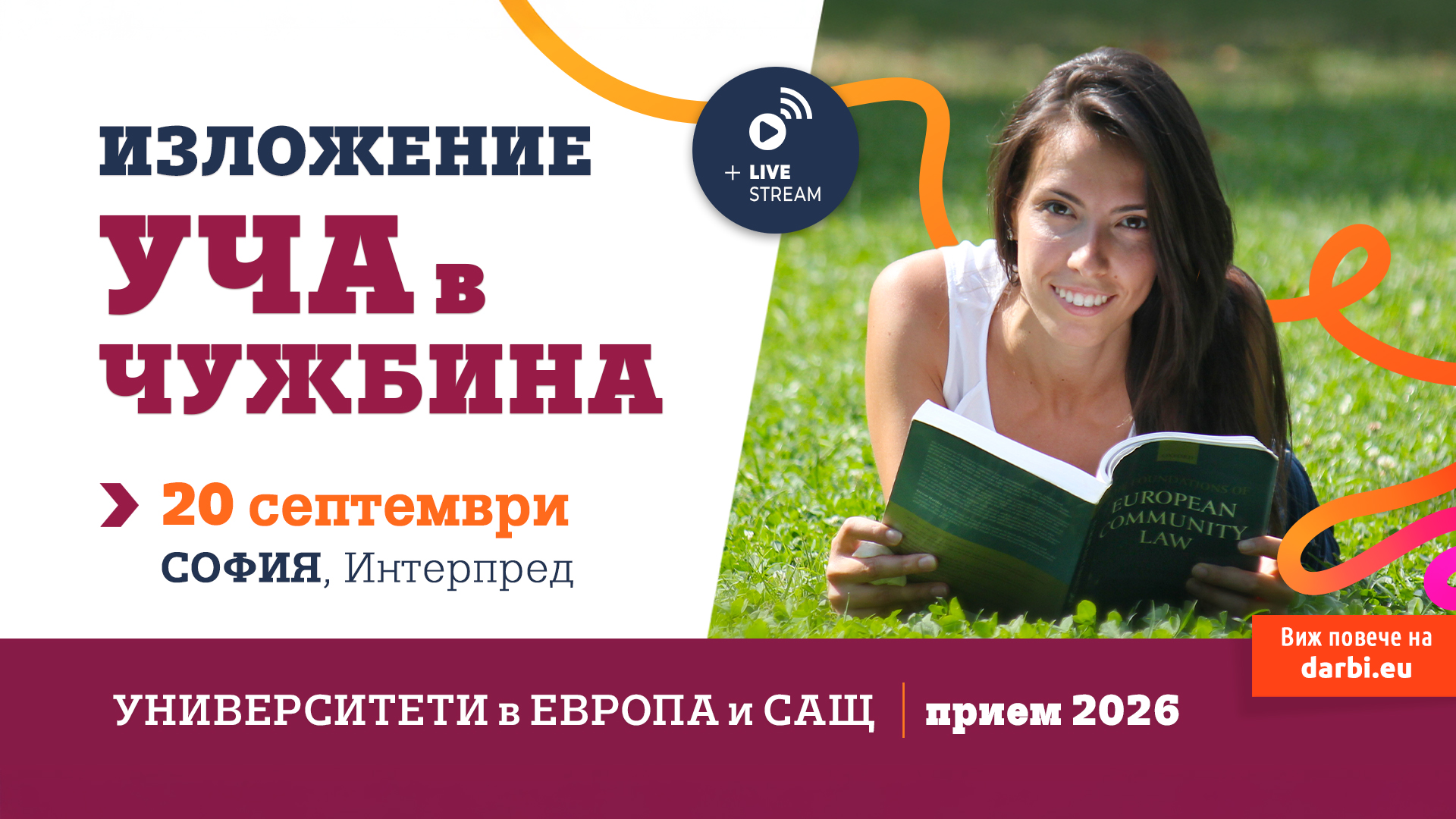 Вече над 20 години изложението „УЧА в чужбина“ на ДАРБИ събира на едно място кандидат-студенти, водещи университети и експерти, за да покаже най-актуалните възможности за обучение в чужбина.